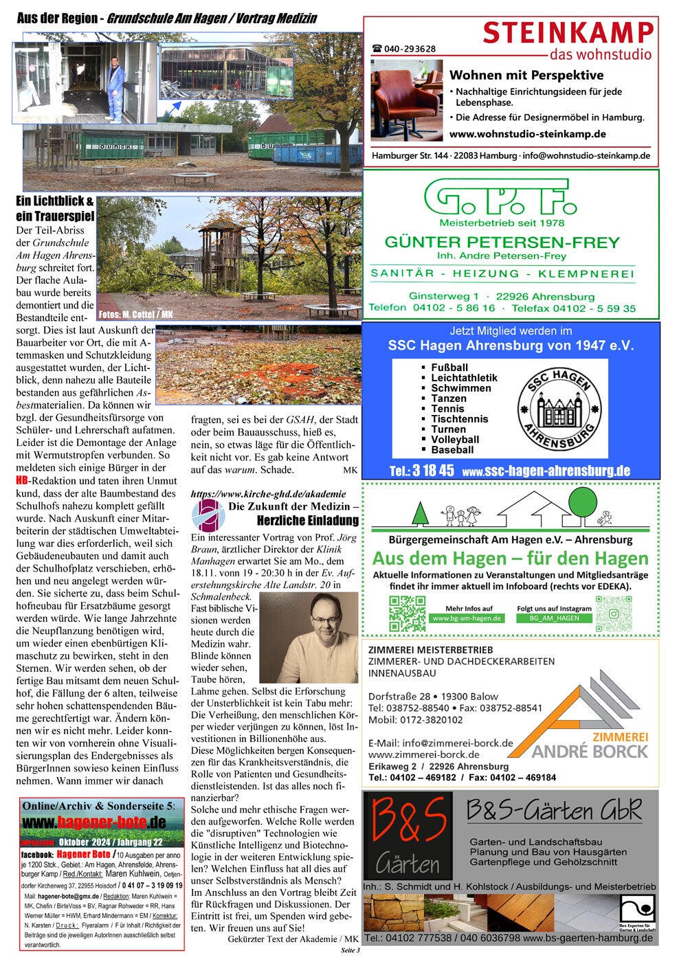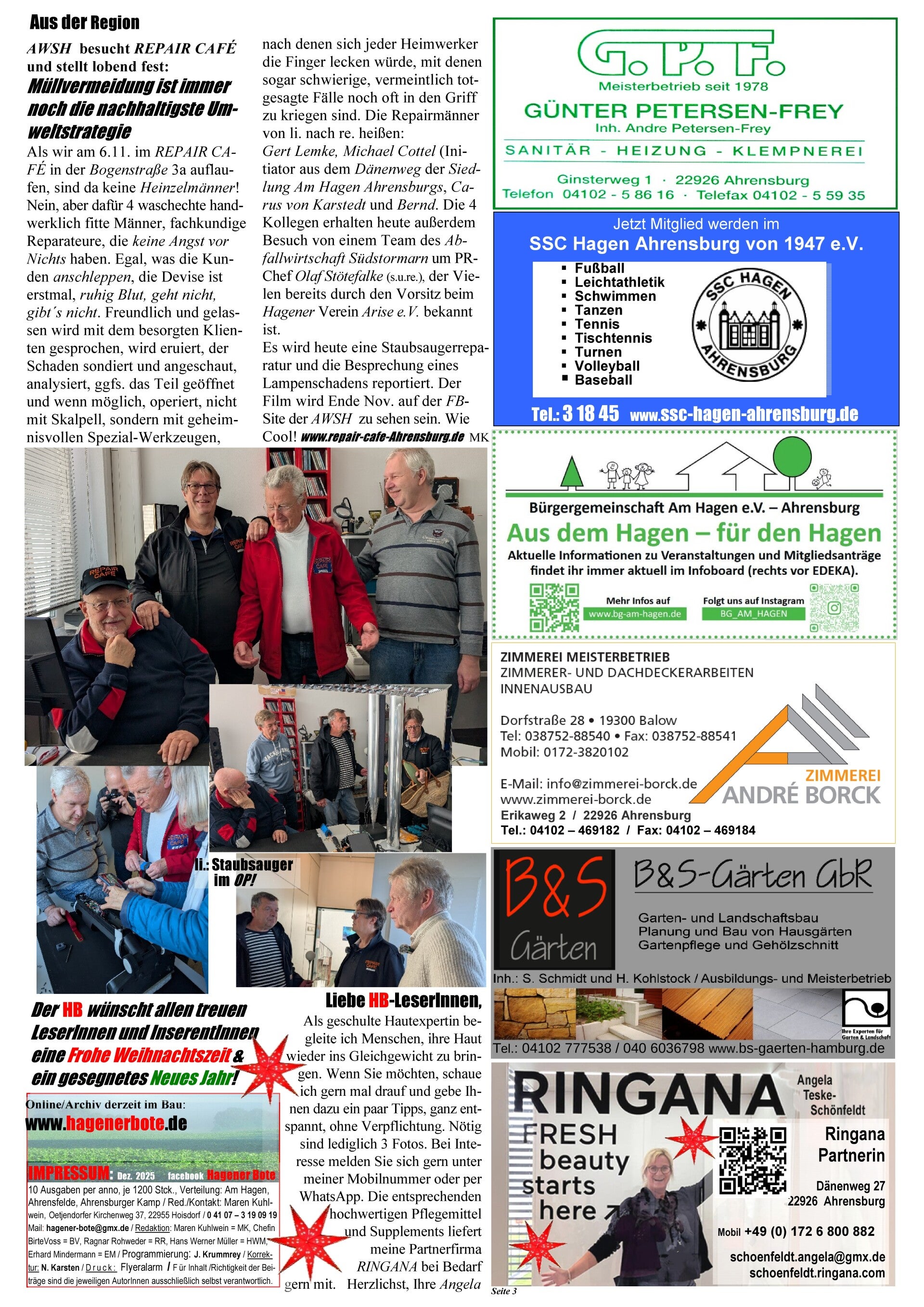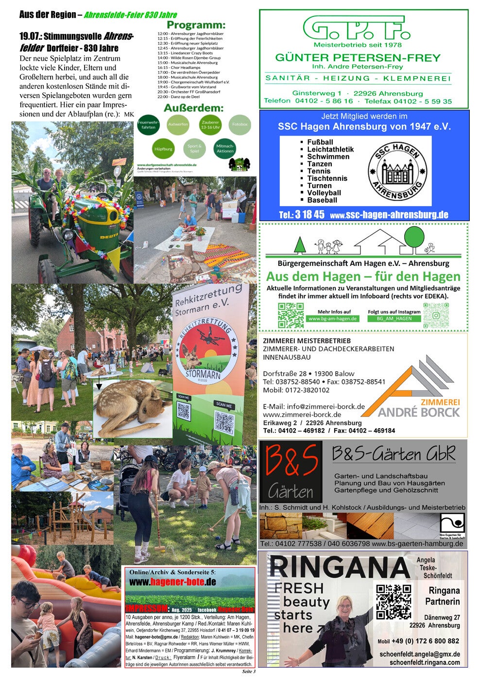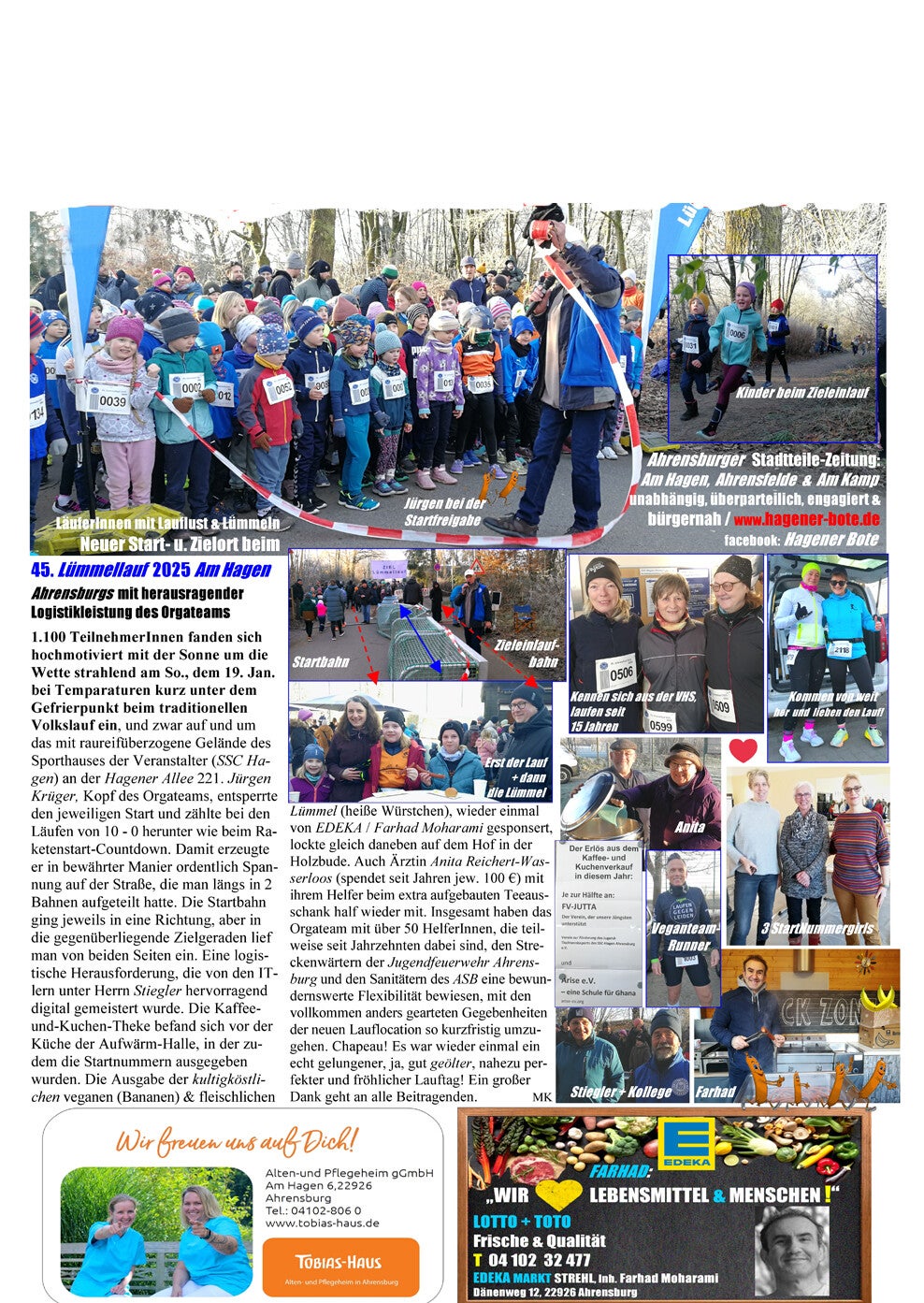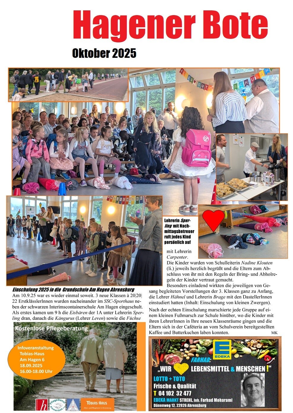 Hier finden Sie die vergangenen Ausgaben des Hagener Boten aus dem Jahr 2025 und frühere Jahre. Stöbern Sie in unserem Archiv, entdecken Sie interessante aktuelle Artikel, Neuigkeiten und Vergangenes der letzten Jahrzehnte aus Ahrensburg, Ahrensfelde und Am Kamp.